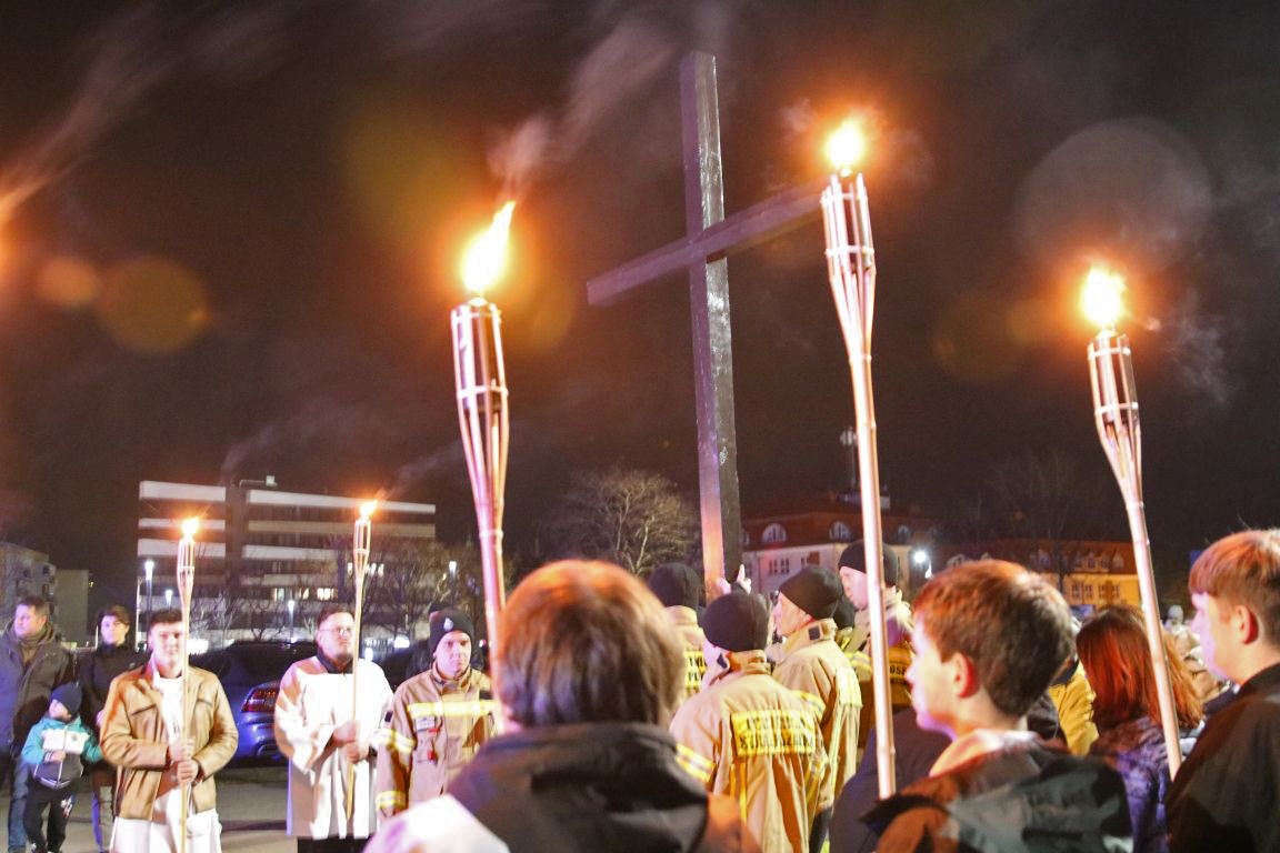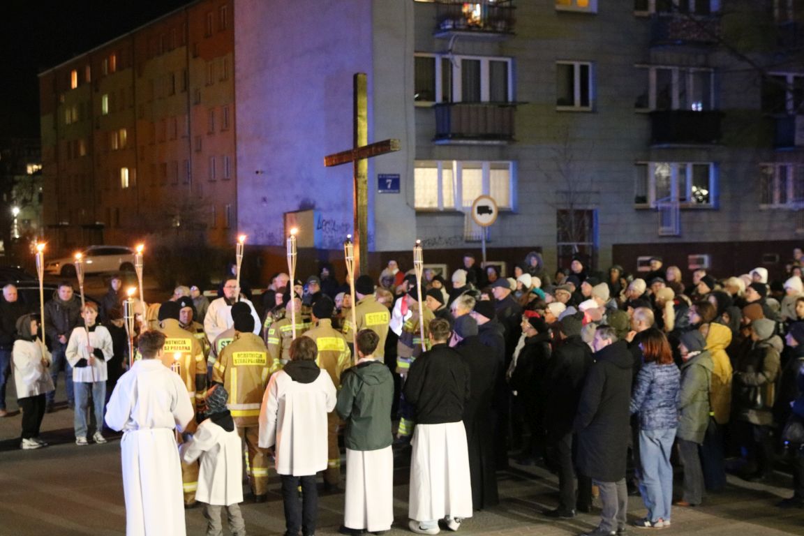 Dziękujemy wszystkim za wspólne przeżycie Drogi Krzyżowej ulicami naszej parafii. Cieszymy się, że mogliśmy razem, na ulicach naszego miasta, wyznać wiarę w zbawczą Mękę Zbawiciela. Jak blask latarni rzucał światło na nasze przejście, tak rozważania kolejnych stacji Drogi Krzyżowej rzucały światło na życie każdego z nas.
