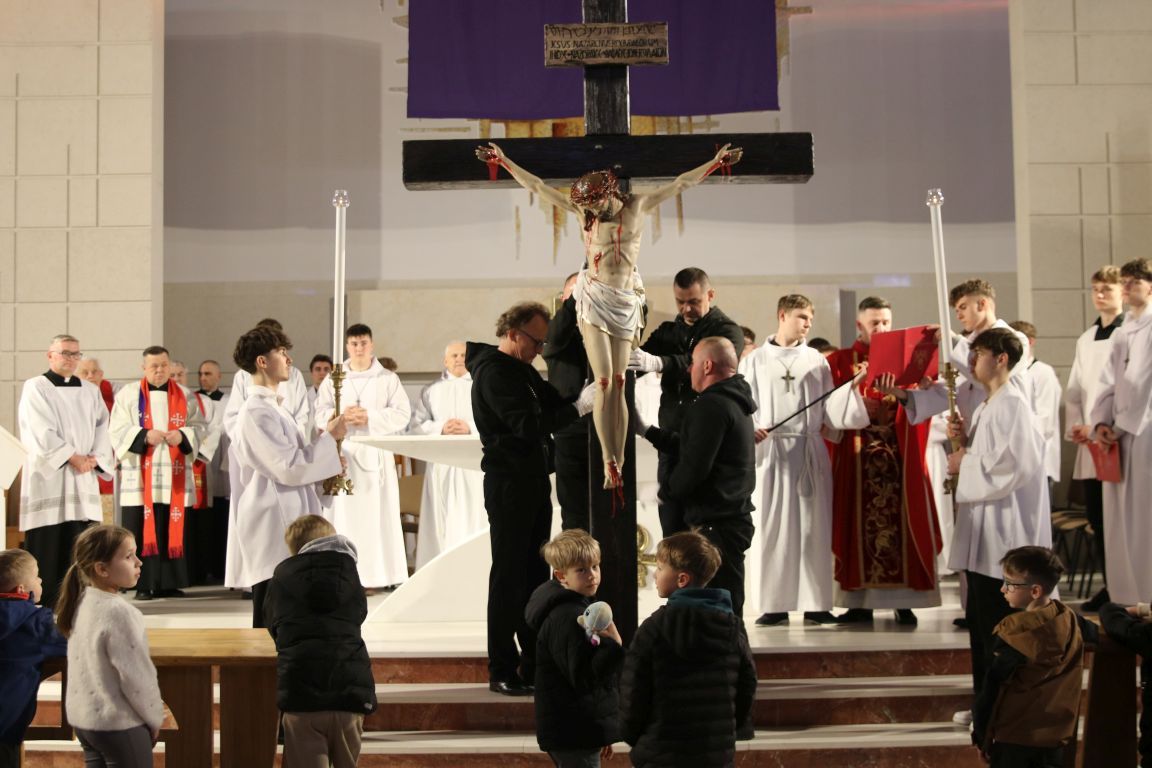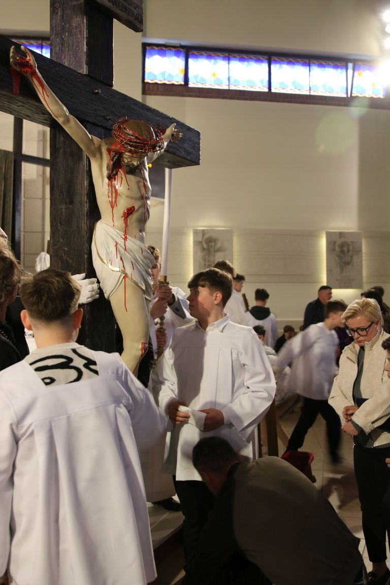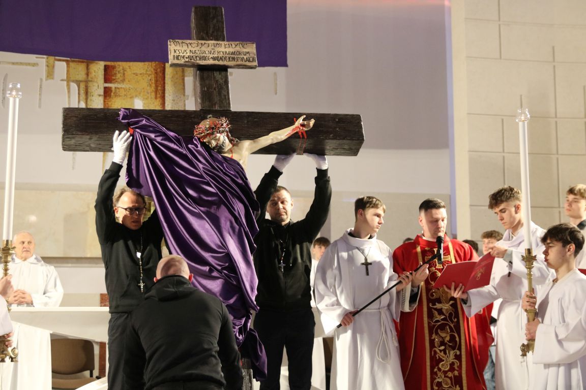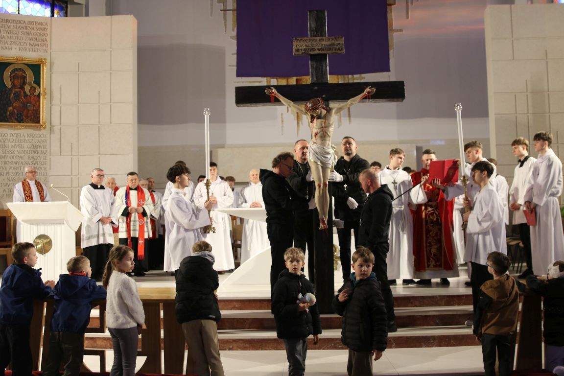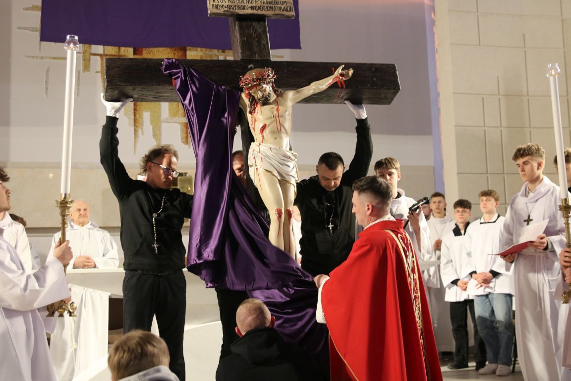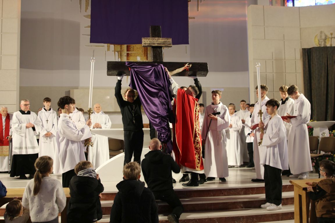 Patrząc na Krzyż, widzimy nie tylko cierpienie i śmierć, ale też triumf Miłości. To ważne, byśmy zobaczyli też prawdę o nas samych… Do refleksji zachęca czytany dziś opis Męki Pańskiej, wyjątkowo uroczysta modlitwa powszechna, adoracja Krzyża i w końcu Grób Pański, do którego w uroczystej procesji przeniesiony został Najświętszy Sakrament.